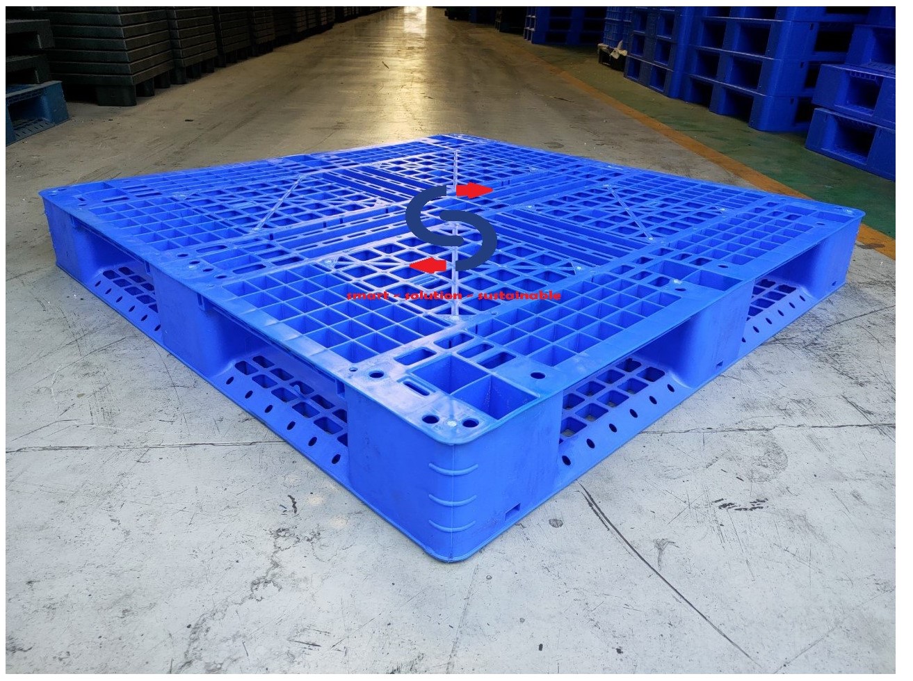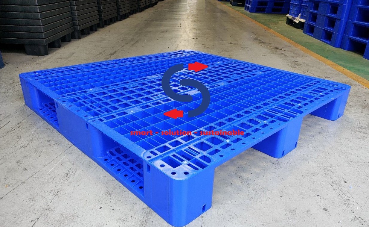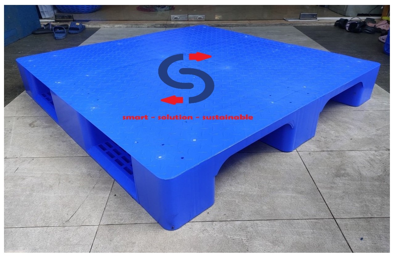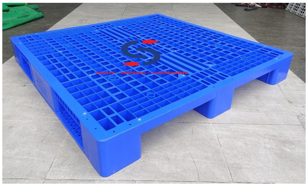 Sản phẩm pallet nhựa được sản xuất dựa trên công nghệ ép tiên tiến, sử dụng nhựa HDPE để tăng khả năng chịu tải ( tải trọng tĩnh 4000kg, tải trọng động 1000kg), với thiết kế thông minh có vị trí đóng lõi thép để tăng khả năng chịu tải và để hàng trên rack giúp các doanh nghiệp tối ưu hóa khả năng lưu trữ hàng hóa và năng lực kho bãi.